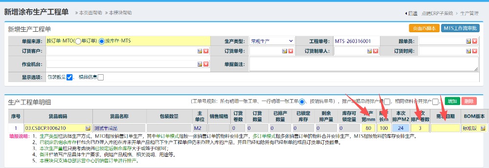 操作步骤:生产管理-排产管理-新增涂布生产单,如下图所示: