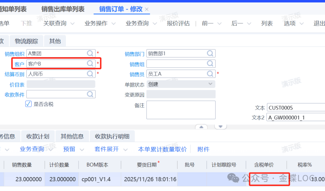 重新选择客户之后,销售订单价格会发生变化,所以在审核之前要确认清楚价格是否正确。