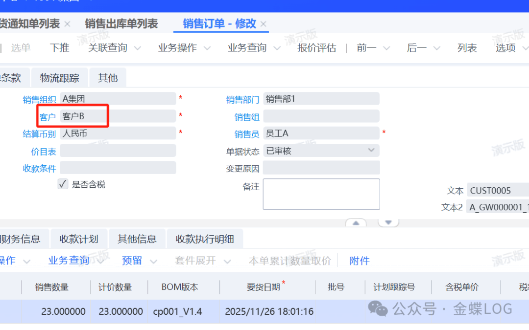 销售订单客户字段不允许在BOS平台放开锁定性或后台强制修改;因为该字段的变化会影响到单据中其他值的变动,比如价格;特别是存在下游数据时,相关报表也会出现异常。