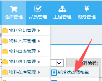 方法 操作步骤:仓库管理-物料在库管理-新增状态调整单