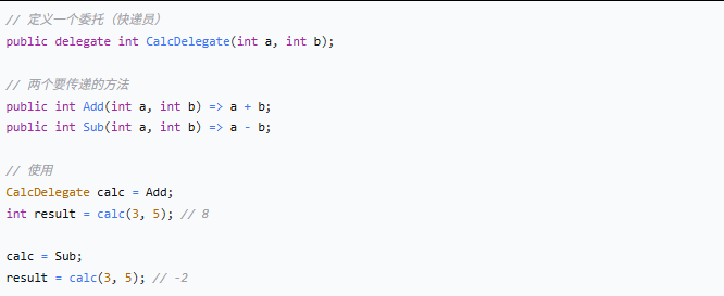 一、一句话说清楚委托:把方法当参数传来传去事件:安全的委托(外面只能订阅,不能乱调)二、委托:方法的快递员场景:计算器要点:委托像快递员,把方法送到你需要的地方三、事件:有规矩的委托场景:按钮点击要点:事件比委托多了规矩——只能订阅,不...