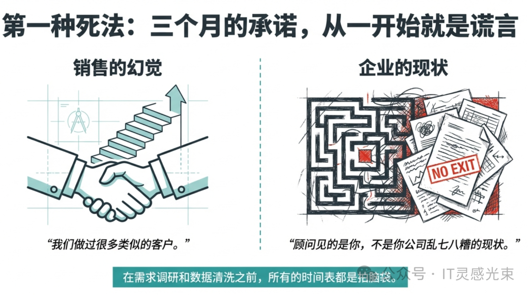 有一种项目,叫做「永远快完成了」。ERP实施就是这种项目的高发重灾区。签合同的时候顾问信誓旦旦:「三个月,最多四个月,我们做过很多类似的客户。」然后你就信了。然后第四个月还在改需求,第八个月还在调接口,第十五个月系统上了但没人用,第二十四个月项目组解散了但问题还在,第三十六个月你换了一批人重新讨论要不要推翻重来。这不是...