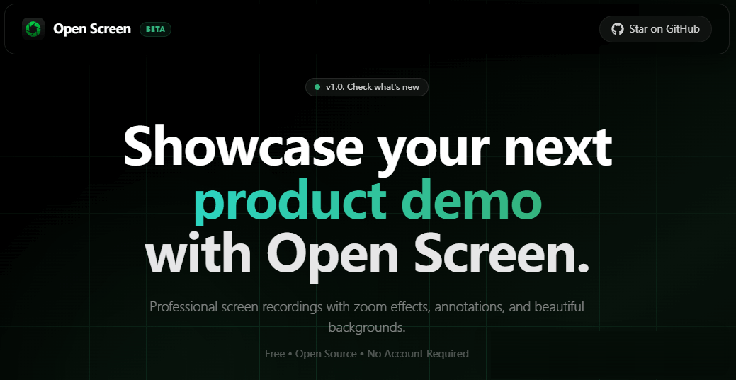 作为内容创作者,你是否曾经为了制作高质量的产品演示视频而烦恼?🎬想要专业的录屏效果,但ScreenStudio每月29美元的价格让人望而却步。今天给大家介绍一款完全免费、开源、无水印的录屏神器——OpenScreen!OpenScreen