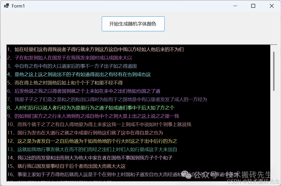 引言利用颜色来更好辨别输出日志信息,好了其他的不多说了,直接奔入主图吧。​效果图实现代码///<summary>///输出并设置字体颜色///</summary>///<paramname=msg></param>///<paramname=color></param>privatevoidWiterLog(strin...