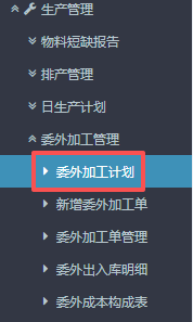 点晴ERP-委外加工单管理流程 进入ERP系统之后,在左侧的功能菜单里找到“生产管理”,点开“委外加工管理”,点击“委外加工单管理”。 2.进入页面后,按图操作:选好委外单类型、物料类型以及单据状态,然后点击查询。在下方得到当前确认的加工单信息。