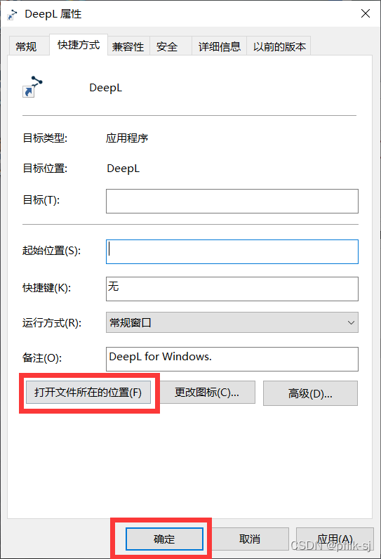 - 在桌面上右键图标属性,再打开文件的所在位置。