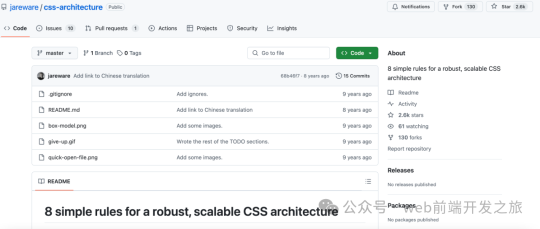 ![]() css-architecture简介:本仓库分享了构建可维护、可扩展 CSS 架构的 8 个实用规则,适合做大型项目或团队开发时参考。 推荐理由: