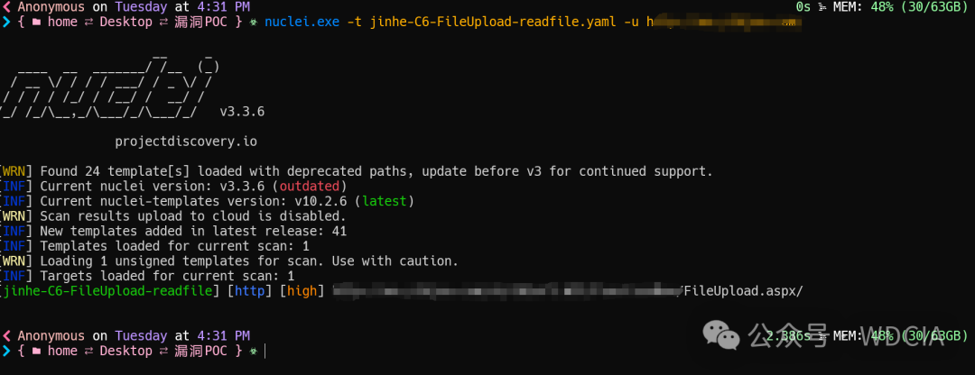 金和 C6 FileUpload.aspx 存在任意文件读取漏洞![]() 01 漏洞介绍 金和OA C6 FileUpload.aspx 接口处存在任意文件读取漏洞,攻击者可以利用 漏洞获取数据库账号密码。 ![]() 02 影响版本 ![]() 03 测绘语法 Fofa测绘语句: ![]() 04 POC ![]() ![]() 阅读原文:原文链接 该文章在 2025/8/5 18:57:36 编辑过 |