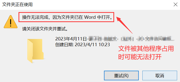 案例:文件访问被拒绝 【朋友们,想问问大家的电脑有遇到过文件访问被拒绝的情况吗?真的太头疼了,大家都是怎么解决的呢?】 在日常使用电脑和操作文件时,有时我们可能会遇到文件访问被拒绝的情况。这可能会让我们无法打开、编辑、复制或删除文件,给我们的工作和生活带来不便。那么,为什么会出现文件访问被拒绝的情况?如何解决这个问题呢?本文将为您详细介绍文件访问被拒绝的原因,并提供5个实用的方法! ![]() 一、为什么会出现文件访问被拒绝?当我们想打开某个文件时,却出现文件访问被拒绝的提示。为什么文件访问被拒绝呢?一般来说,原因主要有以下几种: 1.权限设置不正确; 2.文件正在被其他程序使用; 3.文件或文件夹受到保护; 4.文件或文件夹损坏; 5.用户账户权限不足。 ![]() 二、文件访问被拒绝应该怎么做?如果文件访问被拒绝,我们无法对文件进行操作,会对我们的工作造成一定影响,当出现无法读取文件,访问被拒绝时,我们可以尝试使用下列方法: 方法1:检查文件或文件夹的权限设置 1.右击文件或文件夹,选择【属性】,然后点击【安全】选项卡; 2.检查当前用户的权限设置是否正确; 3.若不正确,可以点击【编辑】按钮,修改权限并保存,确保当前用户具有足够的权限来访问或修改文件。 ![]() 方法2:检查文件是否被其他程序占用 如果文件正在被其他程序占用,可以尝试关闭相关程序或等待其完成操作后再尝试访问文件。当无法确定哪个程序在占用文件时,可尝试关闭所有程序,重新启动计算机,以释放文件的占用状态。 ![]() 方法3:解除文件或文件夹的保护 如果文件或文件夹受到保护,可以尝试解除其保护状态。一般可以通过右击文件或文件夹,在【常规】选项卡中取消勾选【只读】。 ![]() 方法4:检查文件或文件夹是否损坏 如果文件或文件夹损坏或出现错误,可以尝试使用文件修复工具或从备份中恢复文件。也可以尝试将文件复制到其他位置或改变文件的格式来解决损坏问题。 ![]() 方法5:提升用户账户权限 如果当前用户的账户权限不足以访问或修改文件,可以尝试切换到具有更高权限的用户账户,或者使用管理员账户来访问文件。在管理员权限下,可以执行更多的文件操作,包括修改权限和解除保护。 ![]() 以上5个方法都能有效的解决文件访问被拒绝的问题,但需要注意的是,在进行以上操作时,务必小心谨慎,确保不会对系统和文件造成意外的损坏或删除。在进行文件操作前,最好先备份重要文件,以防数据丢失 该文章在 2025/8/13 14:42:57 编辑过 |