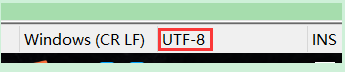这个时候,再用notepad++打开该文件,你会发现该文件编码集已经发生了改变: