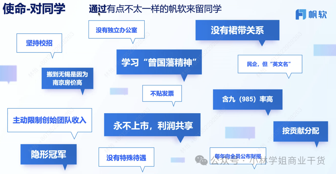 最让我感动的是,我问最早怎么招到人,他说是“真诚和愿景”,有的人选聊了8个小时,第二天还带着他去跑客户去感受。而当年吹过的“牛逼”现在也算是实现了。第二是谈及不上市时候他说,是为了“留住同学”,如果他是马斯克,当然可以“拿的最多”,而他认为、自己不是,而是同学们在创造“更大的价值”,所以要“克制”。