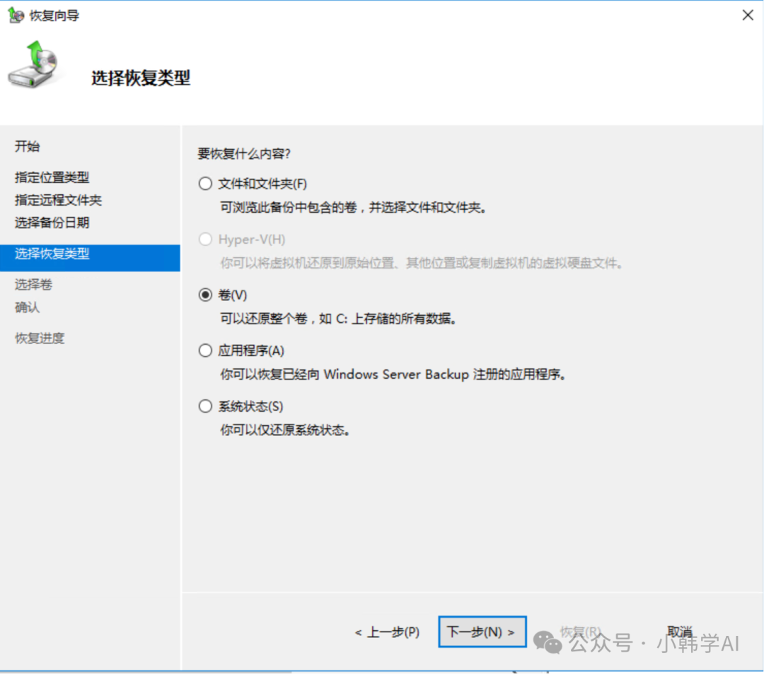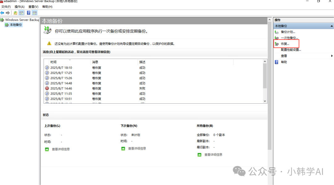 - 本篇文章主要介绍使用windows server backup图形化工具恢复