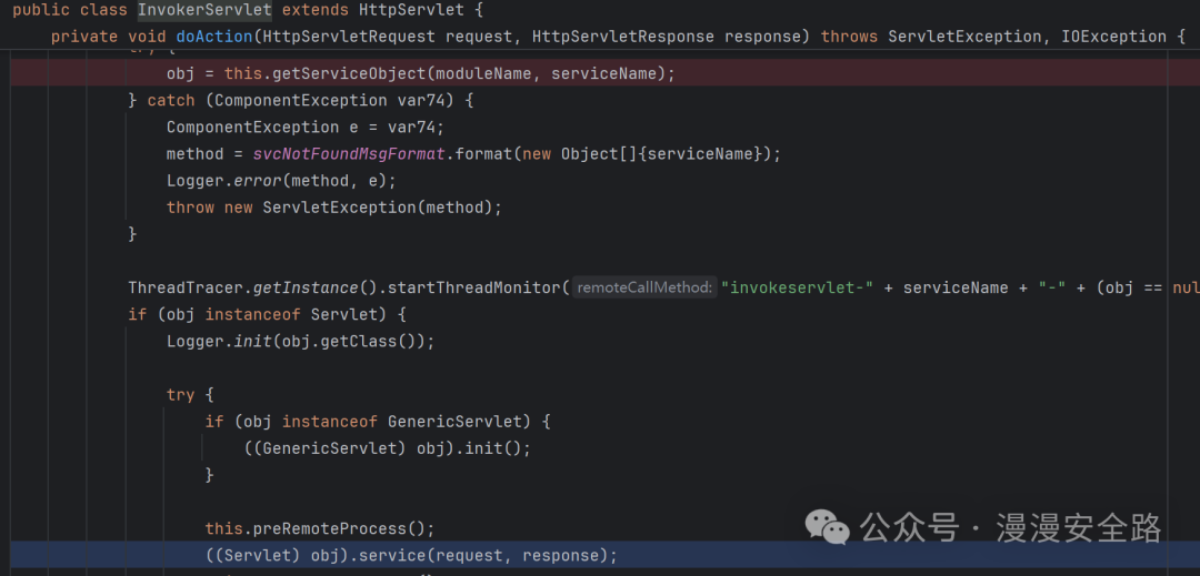根据传入的pathInfo获取obj比如上面的包传入的即为esnserver,然后进入获取到的objservice方法这里最后会进入com.yonyou.esn.servlet.EsnServlet#doAction