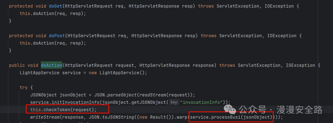 他这个tokentokenSeed都是由用户传入的tokenSeed对应数据包中的ucode过了token检测以后会进入到com.yonyou.esn.ulink.LightAppService#processBusi
