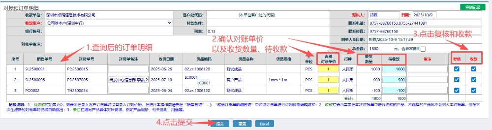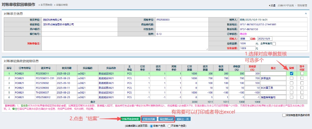 点晴模切ERP-收款对账单流程