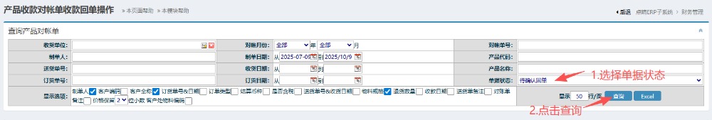 :点晴ERP-收款对账单流程