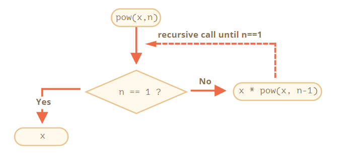 因此,递归将函数调用简化为一个更简单的函数调用,然后再将其简化为一个更简单的函数,以此类推,直到结果