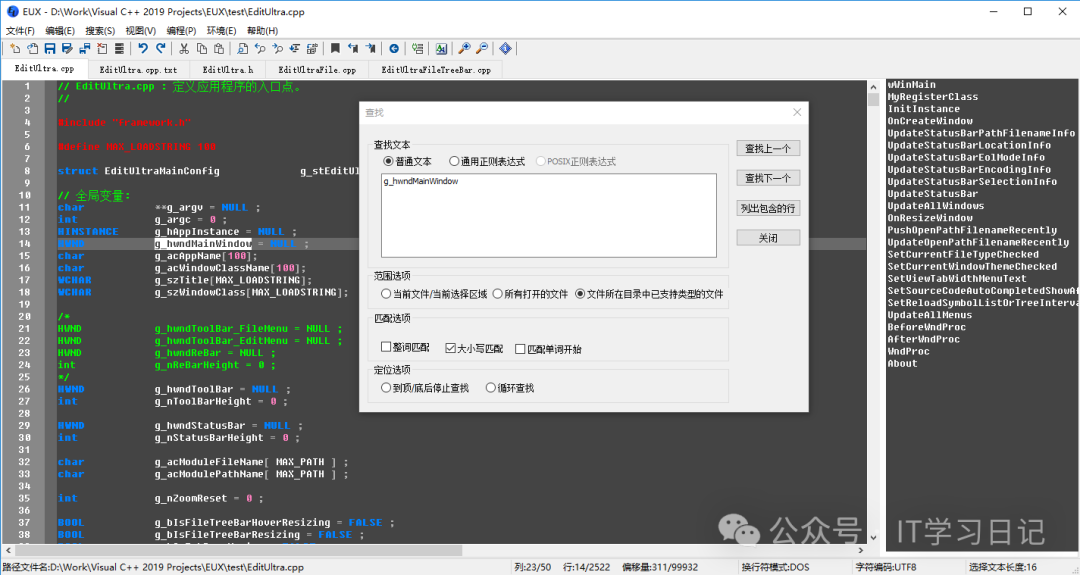 • 查找与替换:可一键列出包含关键字的行,支持类似 grep XXX a.c 的功能