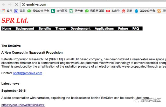 故事在上个月发生了惊天反转! 我们一起来捋一捋 索耶尔叔叔在发明这个装置之后 他一度对自己很有信心 甚至在2001年 自己创立了一家公司 叫做Satellite Propulsion Research 航天器推进研究中心 打算把这件事大搞一通 这个叔叔取名字也是敢 但是到目前为止 这家公司还查不到任何更多的信息 他的网站页面甚至是长成这样的