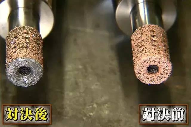 话说满了,就怕折了舌头,日本有家生产钻头的公司表示不服,结果就是在媒体的见证下,双方公开PK,规则是一块20mm厚的方形金属,如果成功钻透一个孔,就是钻头胜利,不能打通,就是金属胜利。 结果是令人沮丧的,说大话的最强金属果然实力超群,超硬合金钻头刀刃损坏,金属无伤。然而,事情并未结束,钻头界各大企业接二连三的前来挑战,先后共对抗了6战。