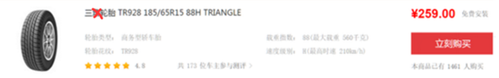 很多朋友在选胎的时候是茫然的,举几个栗子,看你躺枪了没有: 栗子1:换胎就换原配轮胎 大部分中低端车型为节省成本,原车轮胎都是选择低端品牌的低端型号,综合性能相对较差。(部分中低端车型的顶配型号采用的轮胎倒是不错的) 栗子2:看品牌买轮胎,例如:米其林舒适,马牌抓地好,固特异耐用,但不看具体的款式型号 只看品牌买胎是不科学的,事实上几乎每个轮胎品牌都有各种不同性能的舒适胎、性能胎、耐用胎。 栗子3:轮胎就是4个橡胶圈,随便换换就好,不值得多花钱 车辆的安全、舒适、操控都离不开轮胎,无论加速、过弯、刹车、减震、噪音甚至车身电子稳定系统的性能,都受轮胎性能影响和制约。 轮胎永远是车上最值得花钱升级的项目。由于2014年后轮胎价格的集体跳水,现在已经十分实惠,以提问中的185/65 R15为例,一条高端品牌好胎和低端品牌轮胎的差价也就是100-200元,但带来的性能差异却非常明显,所以我只推荐一些一二线品牌的轮胎。 (本文价格图片取自途虎养车网、天猫,仅供参考) 举个栗子: 这可能是市面上能买到最低(la)端(ji)的轮胎,特点:硬、颠、吵、滑(相对于大厂中高端胎),。。。。。价格是挺便宜,259一条。。。。。。快赶上一百多二百一条的摩托车胎了。
