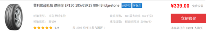 普利司通 绿歌伴 EP150 大品牌的选择可以看看普利司通绿歌伴,上一代产品EP100A,国内外的测试都玩不过AE01,但节油性能更好一点点,价格也贵一些。2013年上市,EP150配套日产新天籁、骊威、启晨晨风纯电动车、普锐斯PHV,提供14-16寸。