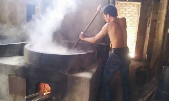 鲜美的蚝水慢慢熬煮, 随着木柴的燃尽添入厚柴, 以保证火候恰到好处。 整个过程需要伙计们轮流看守, 十几个小时不间断地搅拌、加火, 容不得半点差池, 如此,才能熬成一锅粘稠的蚝油。