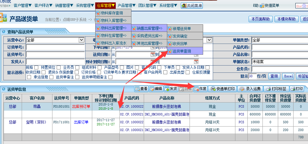 先在仓库管理-》物料出库管理-》销售出库管理-》送货单查询中,找出这张单后,将它作废,然后通知有权限的人员反审核销售订单,修改销售订单,再提交审核后,重新下推送货单即可。 反审核参见教程: 点晴模切ERP更多信息:https://moqie.clicksun.cn,联系电话:4001861886 该文章在 2018/2/5 10:26:37 编辑过 |