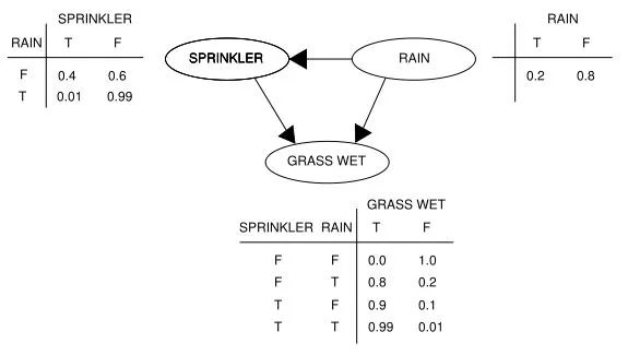 贝叶斯网络 AI智慧的“蜂群效应” 单个语音模型的建立让我们看到了贝叶斯定理解决问题的能力,但贝叶斯网络的拓展让我们隐约感觉到了AI背后“天网”的恐怖。 人类相对简单的问题已经解决得差不多了,剩下的都非常复杂。 龙卷风的形成,2的50次方可能的最小参数值比对。 面对这样数理级的运算,科学家别无选择,必须从可能的法则中选择一些可以信任的,并以此为基础建立理论模型。贝叶斯公式正好以严谨的数学形式帮他们实现了这一点。科学家把所有假设与已有知识、观测数据一起代入贝叶斯公式,就能得到明确的概率值。而要破译某种现象的成因网络,只需将公式本身也结成网络,即贝叶斯网络,接下来只需要向这个模型代入观测数据,通过网络节点间的贝叶斯公式重新计算出概率值。为每个新数据、每个连接重复这种计算,直到形成一个网络图,让任意两个原因之间的连接都得到精确的概率值为止。人类认知的缺陷越大,贝叶斯网络展示的力量越让人震撼。