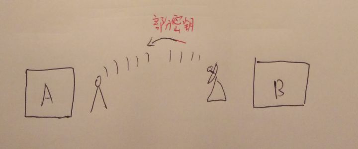 第三步,B将所得到密钥的一部分发给A,A检测如果和自己的密钥相符,那么就证明这个过程中没有其他人在监听,两边的数据是有效的。(这一步后面会解释。)