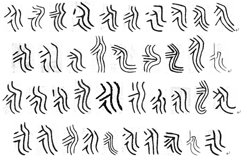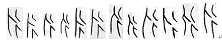也由三部分组成:彳、人、两点或三点。点表示血液,所以甲骨文永也是脉的本字。 写做: