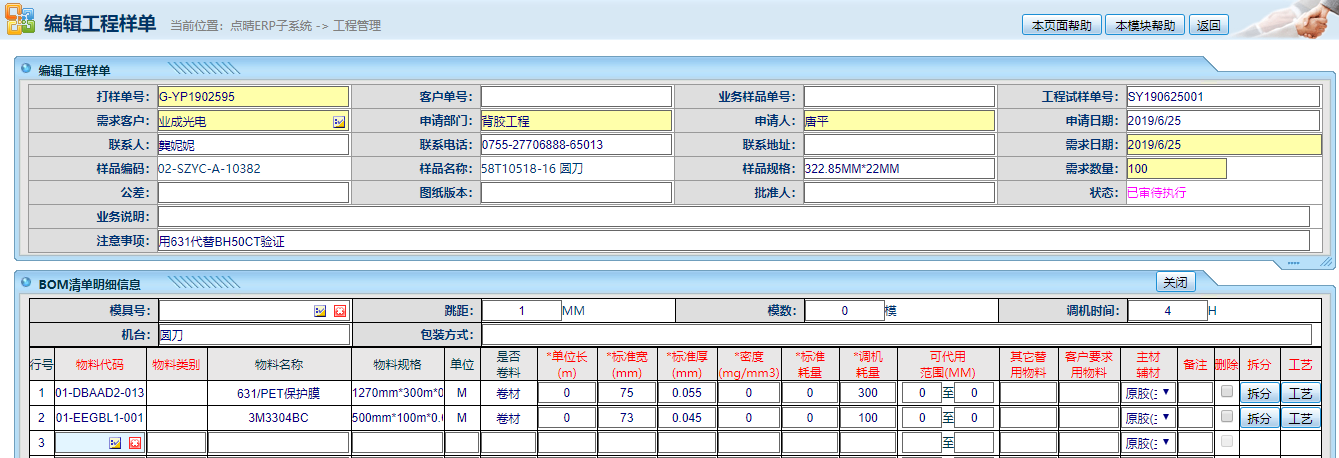 点击模切ERP样品单做错了要修改如何操作?
