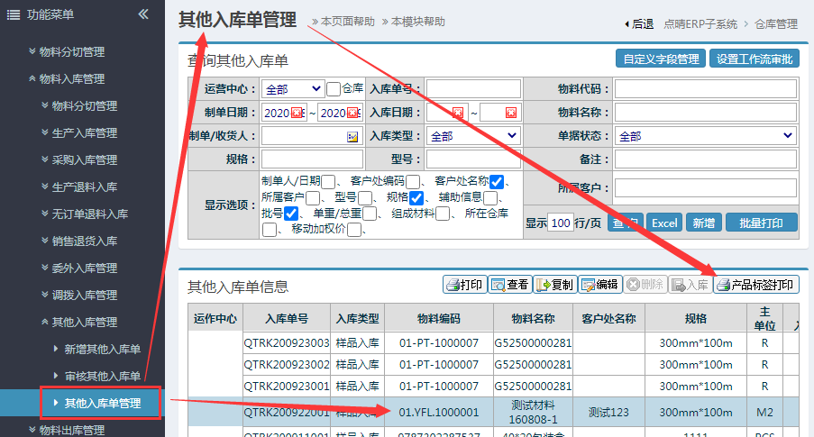 仓库管理-物料入库管理-其他入库-其他入库单管理,