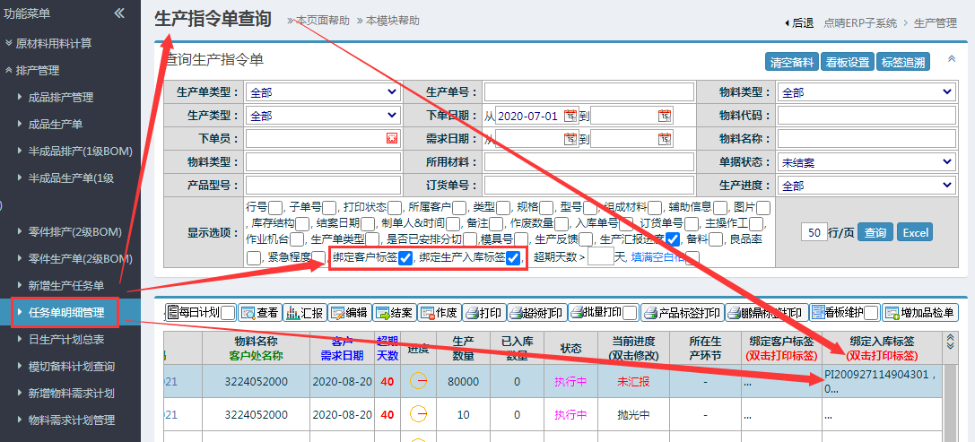 生产管理-排产管理-任务单明细管理,