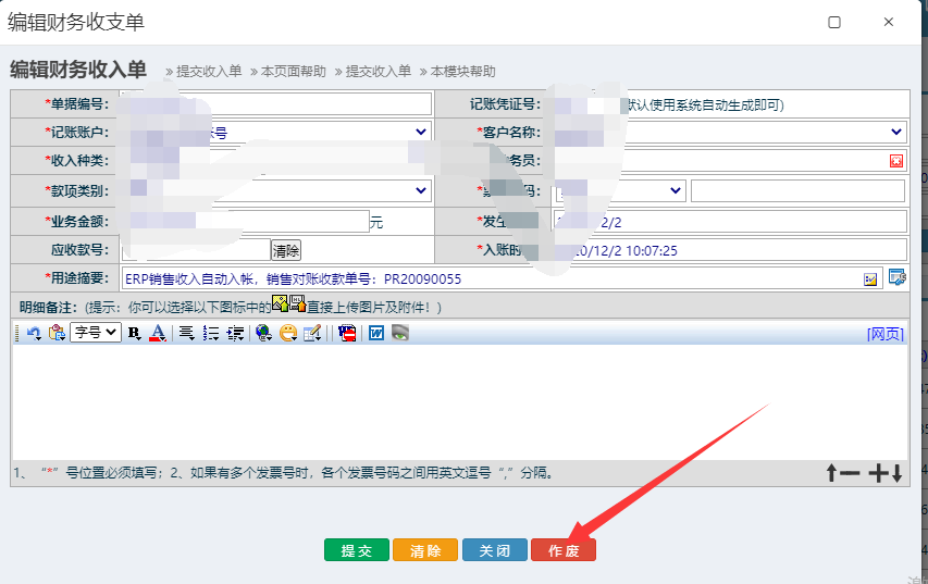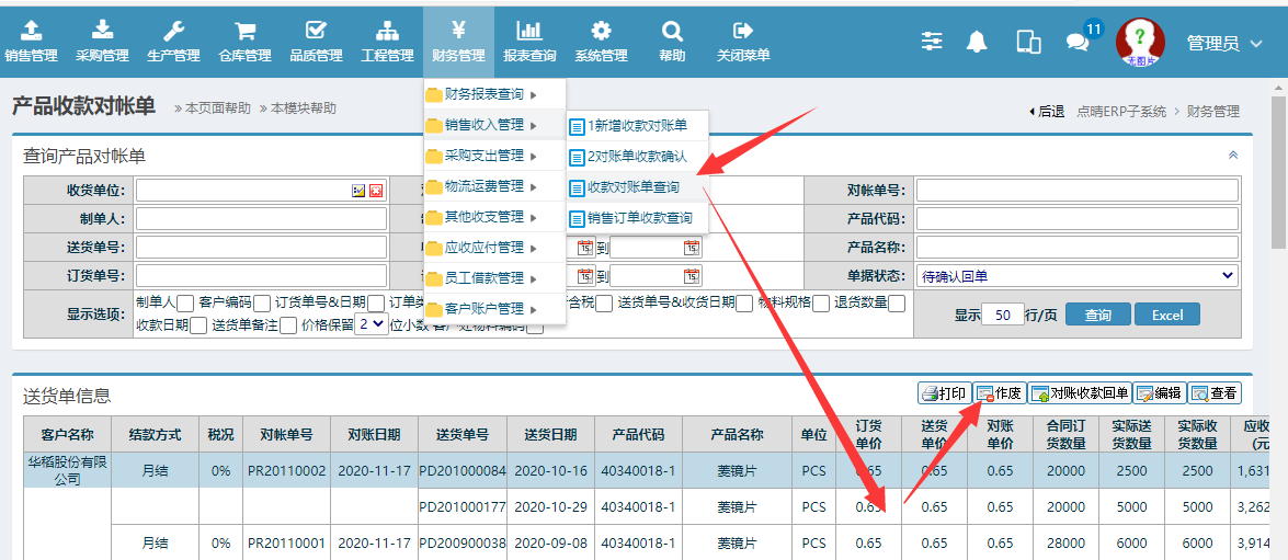 情况1:对账单未做审核 操作步骤:找到对应的单据,点击作废按钮完成 2、对账单已经做了审核 如下图: 操作步骤:财务管理-其他收支管理-收支汇总表 进入页面,找到对应的单据,点击"维护"按钮,再点击编辑按钮,如下图: 点击作废按钮,即可返回到情况1进行操作 点晴模切ERP更多信息:https://moqie.clicksun.cn,联系电话:4001861886 该文章在 2020/12/2 10:40:47 编辑过 |