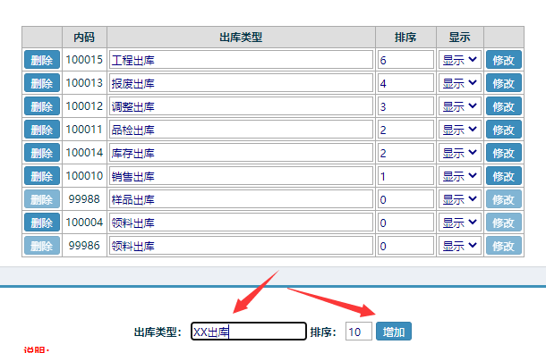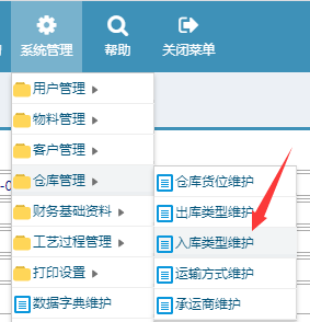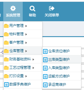 系统管理-仓库管理-出库类型维护/入库类型维护