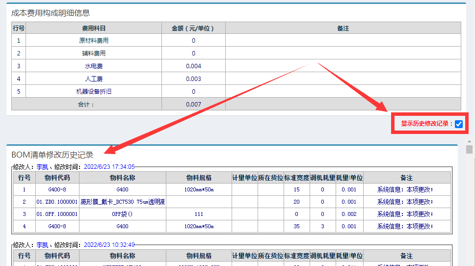 【点晴模切ERP】如何查看物料BOM表被谁改动过,以及改动的内容是什么?