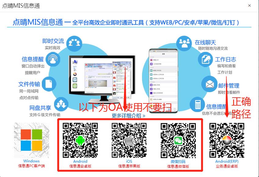 1、前面三个图标为点晴MIS信息通手机APP,用于OA使用,扫码下载时,注意区分开