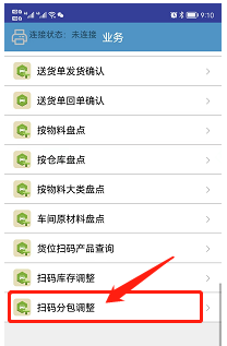 1、打开手机APP,找到菜单“扫码分包调整”按钮
