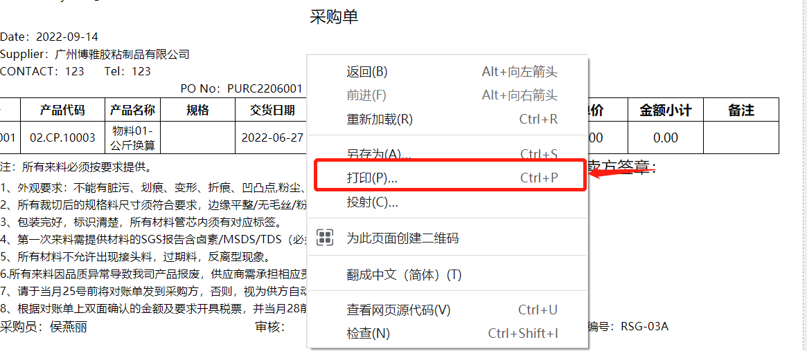 [点晴模切ERP]如何将单据模板导出为PDF