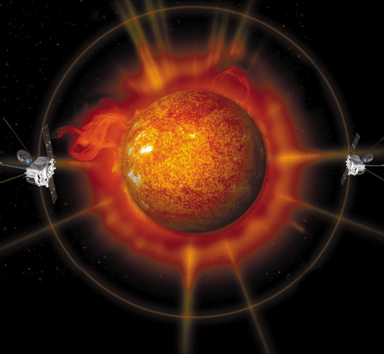 太阳立体图 美国宇航局2006年发射的两颗太阳探测卫星STEREO运动到太阳两侧相反的位置上,首次从前后两面拍摄下了完整的太阳立体图,第一次确认了太阳是一个球形。图为2月6日美国公布的太阳图片。