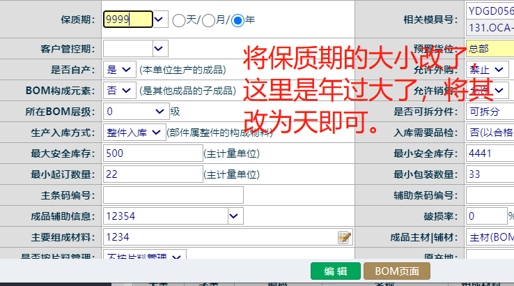 点晴模切ERP-提示:保质期严禁超出99999天或者360个月或者30年!请去物料基础信息处修改该产品保质期