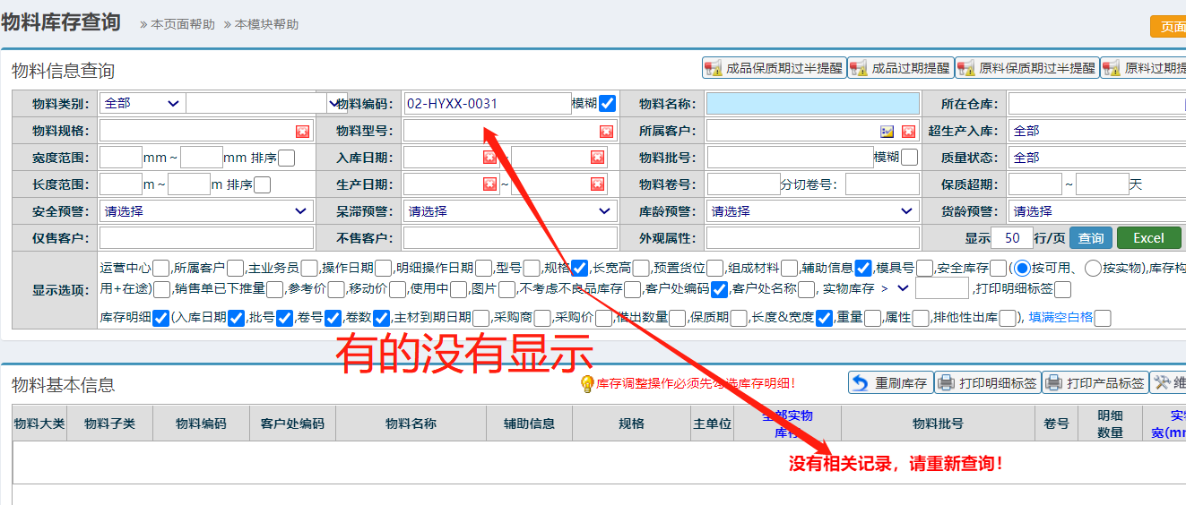 点晴模切ERP-库存查询没有显示出来是因为没有库存吗?