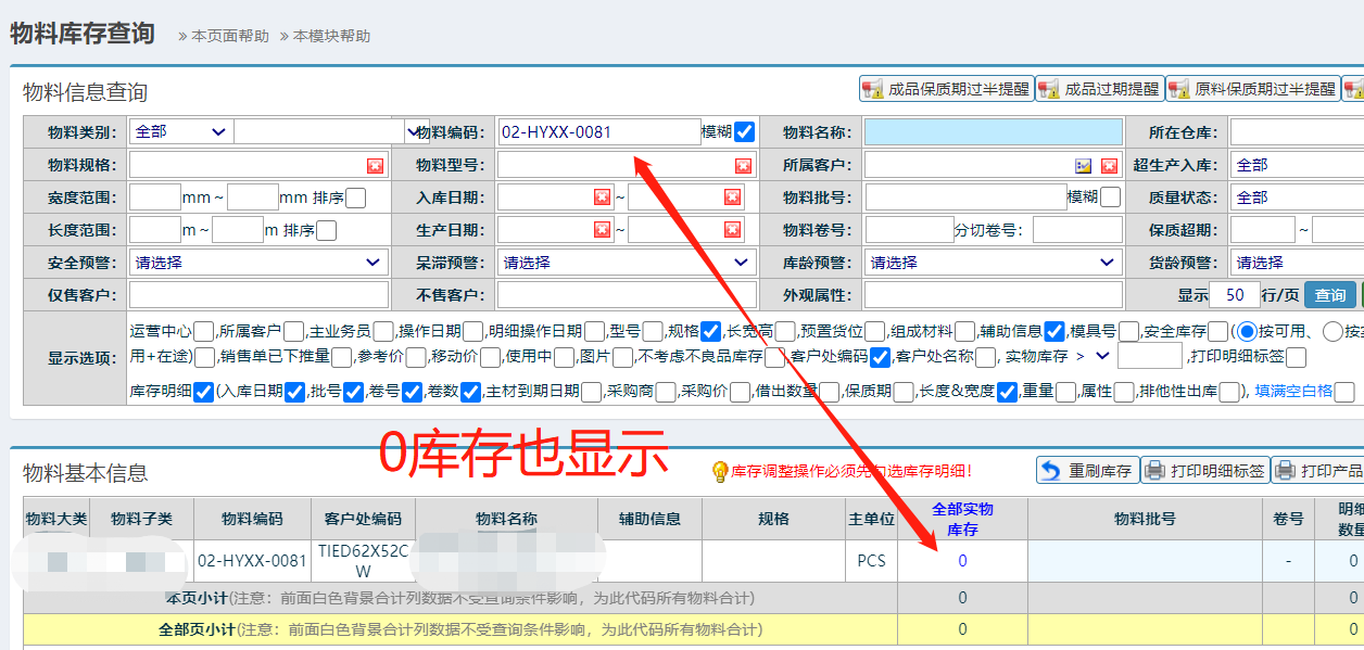 库存查询没有显示出来是因为没有库存吗?![]() 在库存查询有这样的情况,有些物料0库存也显示但有些没有显示,查询为空。如下图: