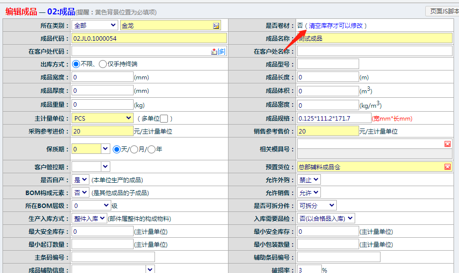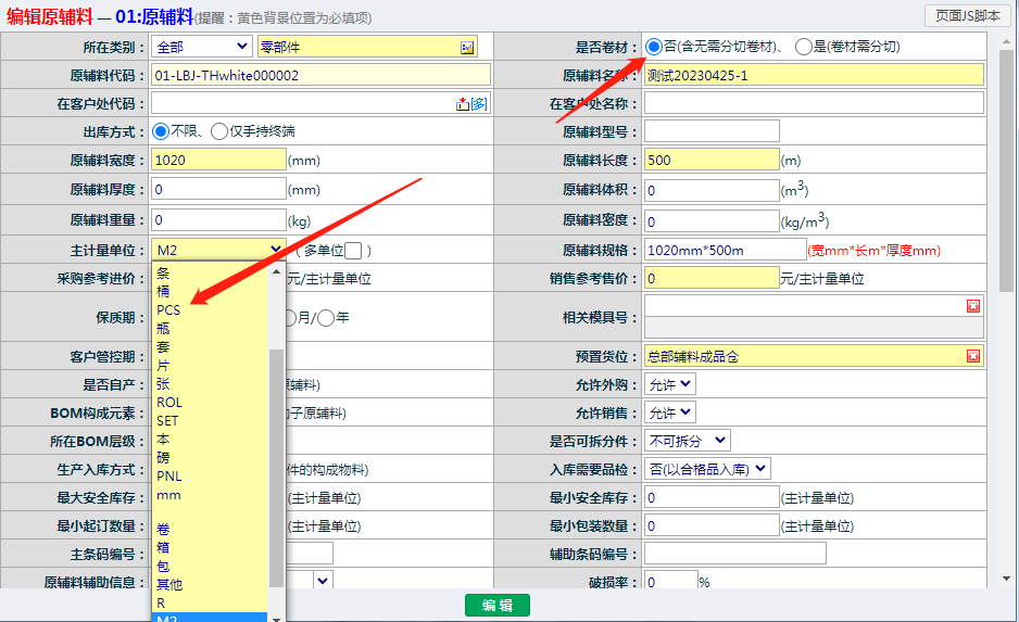 点晴模切ERP物料为何改不了单位?需要修改该如何操作?