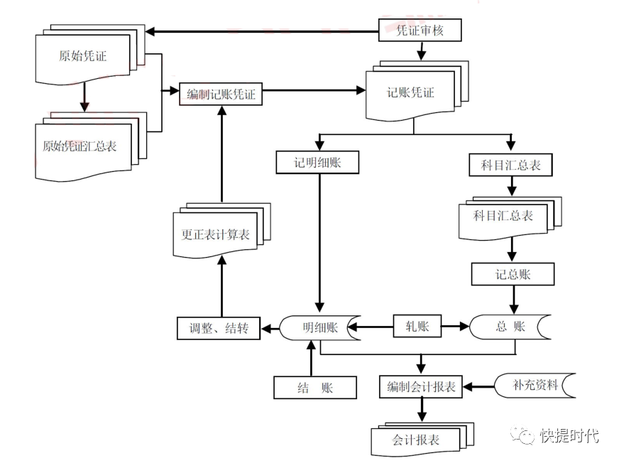 :财务系统处理流程1![]() (1)根据原始凭证或原始凭证汇总表编制记账凭证。 (2)编制转账凭证。 (3)根据收款和付款凭证登记现金日记账和银行存款日记账,并登记有关的明细账与辅助账。根据转账凭证登记有关的明细账与辅助账。 (4)根据记账凭证编制科目汇总表,由科目汇总表登记总账(小型企业可能在登记明细账的同时就登记总账)。 (5)月末进行银行对账。 (6)定期(或需要时)进行轧账,即核对总账与明细账、日记账是否一致,月末进行结账处理。 (7)根据总账、明细账、相关资料编制会计报表。 点晴模切ERP更多信息:https://moqie.clicksun.cn,联系电话:4001861886 该文章在 2023/5/8 13:13:35 编辑过 |