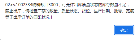 ERP运行过程偶尔遇到生产单入库了,销售这边出库却提示库存不足情况,(此情况经常出现在初始上线阶段)如下图: