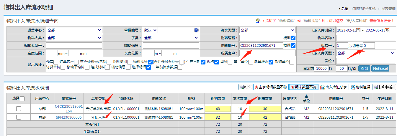 进入界面后,用批号-卷号-分切卷号搜索,如下图: