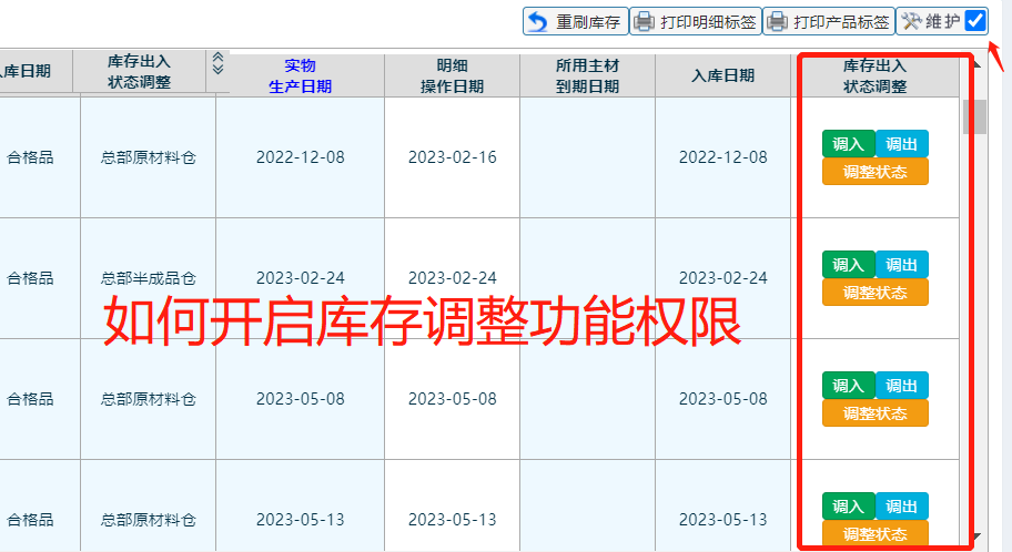 点晴模切ERP-如何开启库存在库调整功能权限