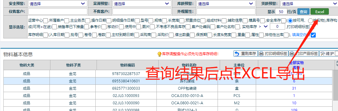 点晴模切ERP-如何导出excel库存信息详解